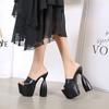 Zapatillas de charol negras de moda para verano, nuevas sandalias elegantes de estilo conciso con tacón redondo, zapatos de plataforma para fiesta de 17,5 cm con tacón alto blanco para mujer
