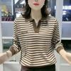 Camiseta de Cuello Alto de Algodón Primavera para Mujer Estilo Coreano Camiseta de Manga Larga Botón Tops Casuales para Mujer Camisola de Color Sólido para Mujer