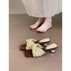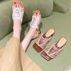 Moda Resort Francés Tejido a Mano Tacón con Forma Sandalias de Punta Abierta Verano 2024 Retro Comodidad Zapatillas de Tacón Alto Versátiles Zapatos Romanos