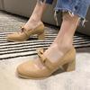 Fashion On Heeled with Bow Square Heels Japanese Style Lolita White High Mary Jane Gothic Shoes for Woman 2024 Women's Summer Footwear