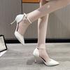 Fashion 2024 Summer New Fashion Outwear Women's High Heel Shoes Pointed Shallow Mouth Solid Color One Line Buckle Banquet Shoes