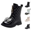 Girls' Cotton Shiny Leather Boots 2024 Autumn Winter New Warm Little Princess Anti Slip Fashion Children's Short Boots Glossy