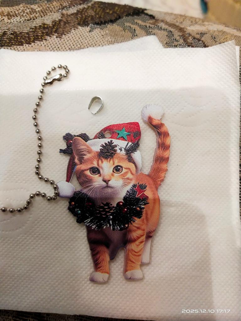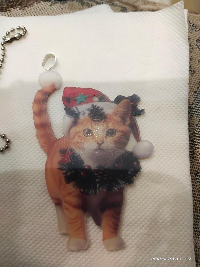 Colgante de gato navideño en acrílico 2D, adorno colgante con forma de sombrero de Papá Noel, adorno para espejo retrovisor de coche, regalo para amantes de los gatos