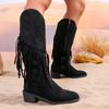 Women Fashion Fringe High Boots Suede Heels Shoes 2024 Trend New Gladiator Motorcycle Boots Autumn Winter Goth Pumps Snow Botas