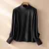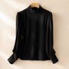 Camisa de Otoño e Invierno para Mujer con Cuello Medio Alto, Volantes en los Hombros y Bajo, Top Ajustado de Manga Larga