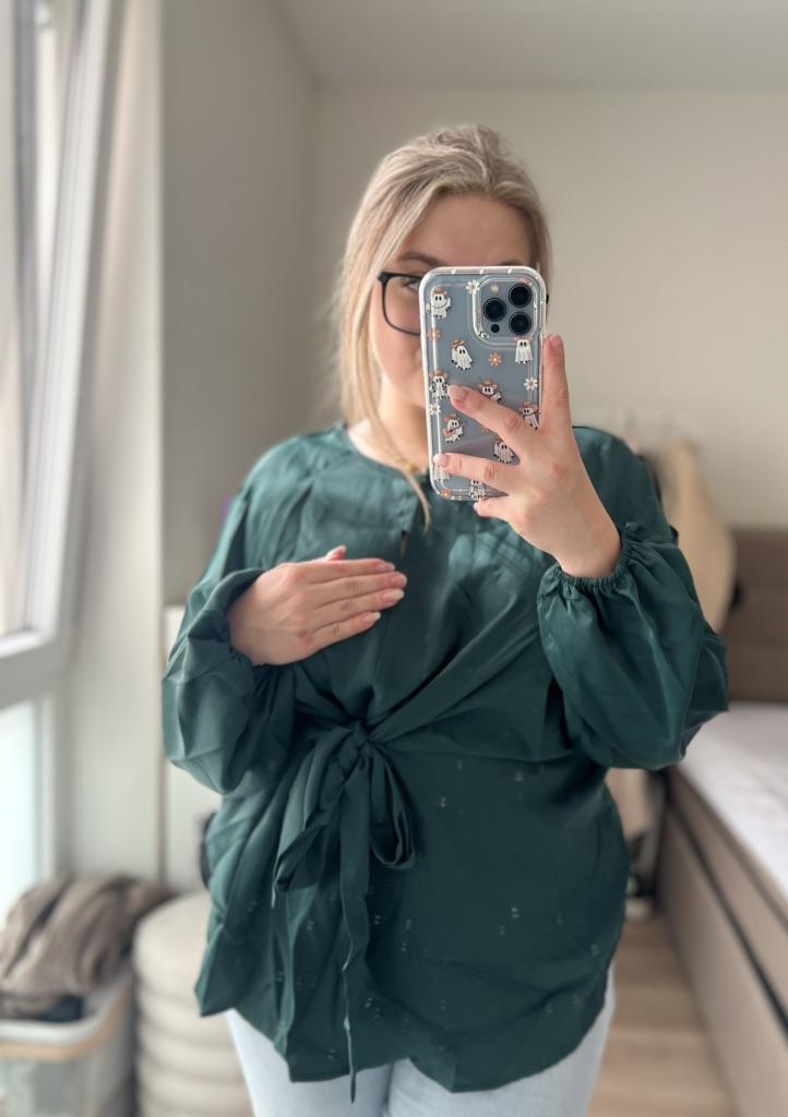 Camiseta para mujer La camiseta es de muy alta calidad! Adecuado para primavera, otoño Es muy cómoda sobre el cuerpo sienta bien. Hecha de tela de poliéster Hay una blusa de cuello redondo con abertura y botón y mangas largas con goma, hay una lazada para añadir belleza. Camiseta de calidad muy recomendable comprar! La camiseta me llegó en un envío rápido y protegido 📦