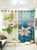 Cortina de sombreado alto de piso a techo de loto chino, decoración para dormitorio y sala de estar, cortina opaca de tela, estilo loto