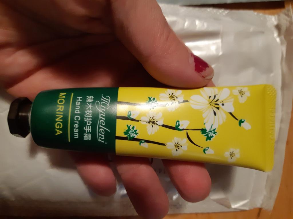 *Crema de manos con manteca de karité* 💥𝗟𝗶𝗲𝗳𝗲𝗿𝘇𝗲𝗶𝘁 alrededor de 3 semanas 💥𝗟𝗶𝗲𝗳𝗲𝗿𝘂𝗺𝗳𝗮𝗻𝗴 Se incluye 1 tubo de crema hidratante para manos.. Está disponible en un frasco de 30 g en 9 aromas diferentes.. Pedí la versión de almendras con manteca de karité (almendra).. Se entrega magníficamente empaquetado en plástico de burbujas.. 💥𝗤𝘂𝗮𝗹𝗶𝘁ä𝘁 El olor me parece muy agradable, no demasiado picante. 🌸 Sin embargo, el olor no me recuerda en absoluto al de las almendras. creo que es una pena. La crema es fácil de aplicar y esparcir maravillosamente sobre la piel... Tiene una textura similar a un gel.. Se absorbe rápidamente y deja un olor agradable.. Después la piel queda agradablemente suave.. El tubo me parece una ventaja porque puedes guardarlo simplemente boca abajo, de modo que el contenido siempre esté en el cuello de la botella y, por lo tanto, se pueda consumir por completo.. Para aplicación : Simplemente aplique la crema en las áreas deseadas de la piel y masajee con movimientos de masaje.. Esta crema se puede utilizar principalmente para las manos. Una vez abierto tiene una vida útil de unos 3 años.. 💥𝗙𝗮𝘇𝗶𝘁 Lamentablemente me decepcionó el olor, esperaba una crema de manos que oliera a crema de almendras y compré una crema de manos que olía todo menos eso. 😕 Sin embargo, la crema huele bien y se extiende fácilmente sobre la piel. . Después la piel queda agradable y flexible... no hay película grasa en la piel.. beneficios: - es fácil de aplicar - se absorbe rápidamente - huele agradable pero lamentablemente no a almendras - revitaliza la piel - hidrata - hacer la piel agradable y suave - con vitaminas - no deja película grasa - alto contenido de agua ¡Gracias a Joom y a los fabricantes! ❤️ ⭐⭐⭐⭐⭐ Si te gustó mi reseña y te ayudó a tomar una decisión, me encantaría que me siguieras para muchas más reseñas por venir.. 📲