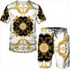 Summer 3D Printed T-shirt Shorts 2-Piece Set Casual Luxury Vintage Gold Pattern Men's Sports Suit 2024 Street Fashion Men's C