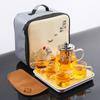 Juego de té chino Gongfu portátil Tetera de vidrio de borosilicato resistente al calor Bandeja de té Juego de tazas de té Una tetera de cuatro tazas Bolsa de regalo