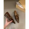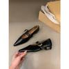 Zapatos Negros de Punta con Suela Plana para Mujer Zapatos de Verano Franceses de Tacón Bajo Temperamento Mary Jane Zapatos Pequeños de Cuero