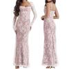 Vestido largo de 2 piezas con corsé y capa de malla suave con estampado floral, vestido de noche sexy con chal y cordón de encaje