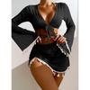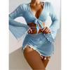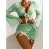 Conjunto Conservador de Cuatro Piezas Blusa de Color Sólido Falda de Malla Bikini Traje de Baño al por Mayor Mujer