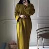 Vestido de punto de manga larga con cuello redondo y lazo informal holgado de otoño para mujer de talla grande