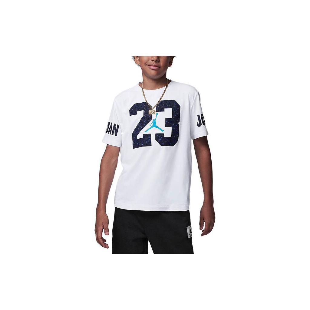 Jordan 23 Estampado de Logotipo de Número Moteado Camiseta Deportiva de Manga Corta para Niños Tops Blanco FV2625-100