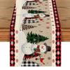Bandera de Mesa Navideña de Lino con Estampados de Muñeco de Nieve y Papá Noel - Decoraciones Festivas para Mantel
