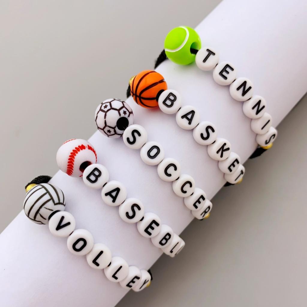 Pulsera de Cuentas Deportivas Hecha a Mano Única para Adolescentes - Voleibol, Baloncesto, Fútbol, Béisbol y Tenis Pulsera de Nudo de Cordón