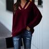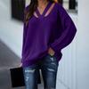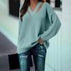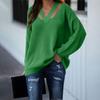 Suéter informal de color sólido con personalidad y manga larga con escote en V holgado a la moda para mujer