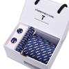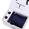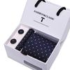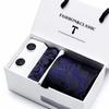 El conjunto incluye corbata, pañuelo cuadrado, gemelos y caja de regalo blanca.
