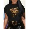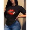 Camiseta de algodón con cremallera y estampado de labios, Camiseta de manga corta con cuello redondo, Tops casuales para el día a día, Ropa para mujer
