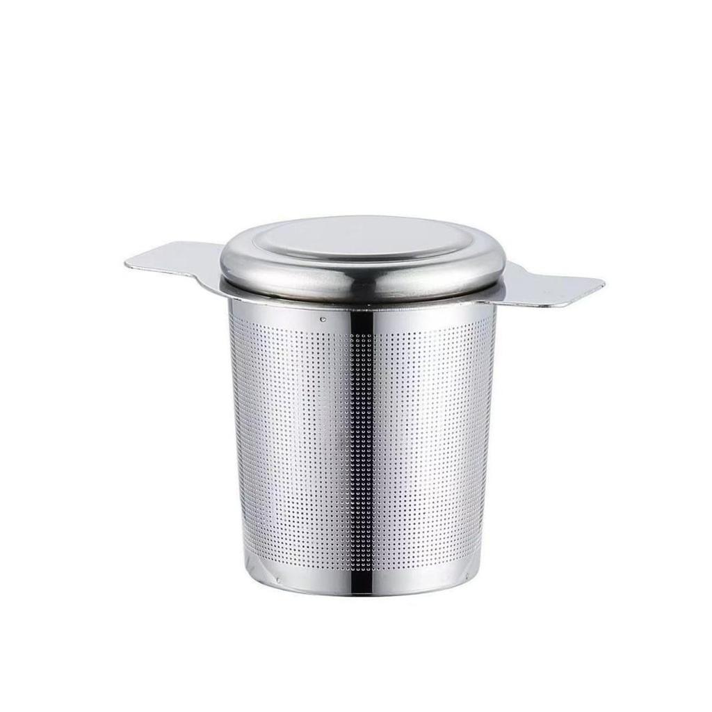 Colador de té y café de acero inoxidable 304 con tapa y filtro de malla de doble oreja