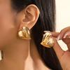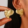 Oval Stainless Steel Earrings Personalized Trend Geometric Peach Heart Texture 18K Gold Earrings Stud Earrings