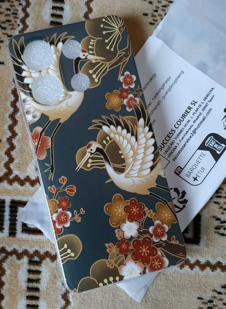Funda bonita y brillante con superficies laterales transparentes (foto 1). Agradable al tacto. Se puso fácilmente en el teléfono (foto 2), todos los conectores y otros orificios coincidieron. Los botones se presionan sin esfuerzo. Foto 3 - con anillo soporte.
