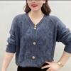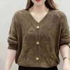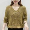 Suéter de punto de color sólido fino con cuello en V y manga larga para mujer, suéter holgado y adelgazante para primavera y verano