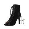 Sandalias de tacón de malla hueca para mujer, zapatos de verano negros con cordones, botas sexis con punta abierta, tacones de aguja, zapatos de baile jazz para mujer
