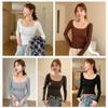 T-shirt Autumn Base Black Low Neck Women's Spring Autumn Top Long Sleeved Interior Korean Version Slim Fit T-Shirts Women’s