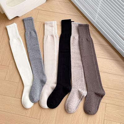 Medias de estilo japonés para mujer, calcetines largos de estilo universitario para niñas, medias tejidas de algodón, medias altas hasta el muslo de Color sólido