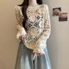 Suéter de punto hueco de crochet francés, top de flores tridimensionales de talla grande para mujer, otoño e invierno