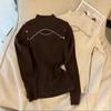Half High Neck Nail Bead Hollow Out Fashionable Knitted Base Shirt for Women Long Sleeved Autumn and Winter Versatile Top