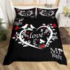 Valentine's Day Duvet Cover Set King Size,Red Truck Heart Tree Bedding Set,Rose Flowers Trailer Comforter Cover Romantic Gifts