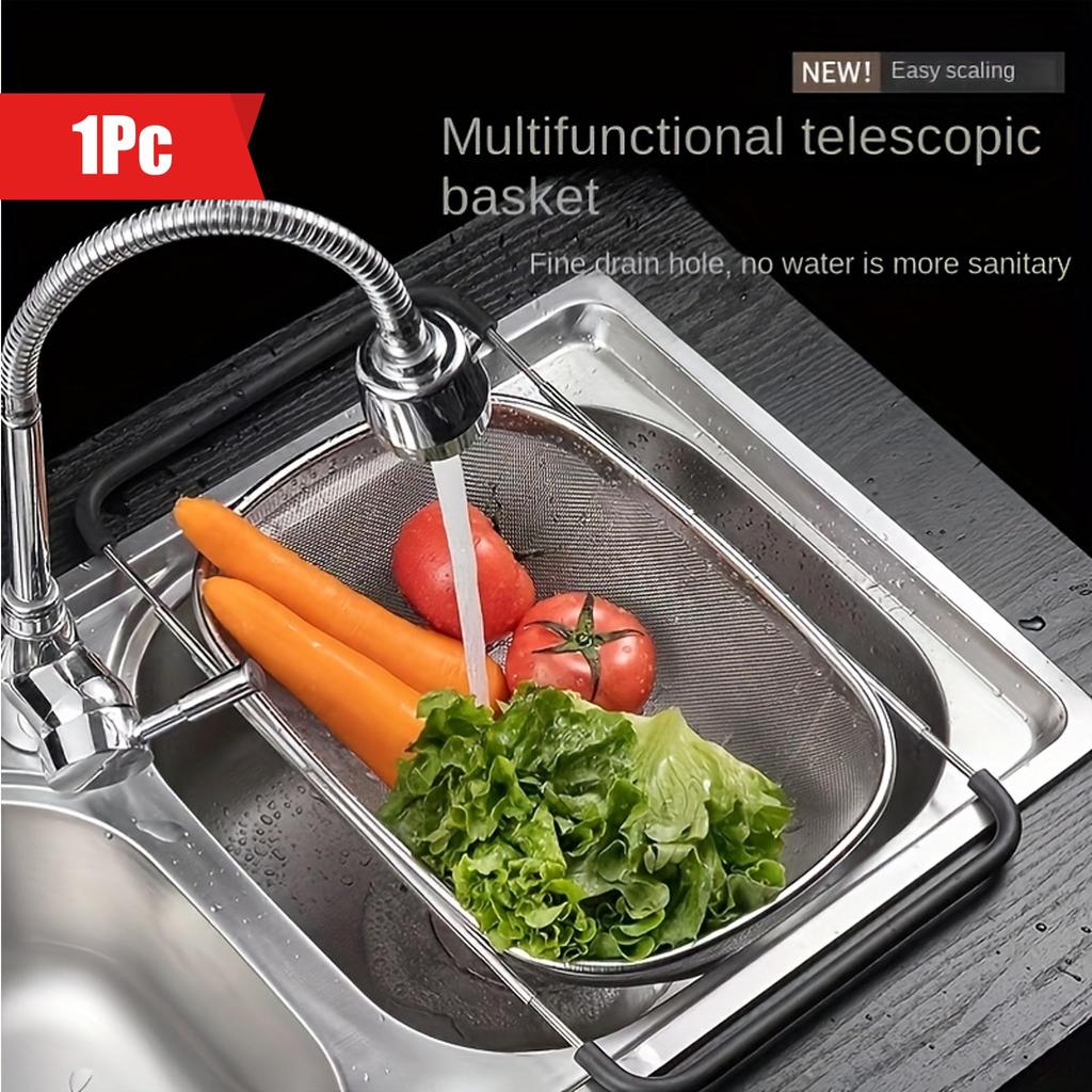1 pieza, Colador de Fregadero, Cesta de Lavado de Fregadero para Verduras, Rejilla Cesta Escurridora de Fruta, Cesta Escurridora de Acero Inoxidable, Cesta Coladora, Rejilla de Fregadero Ajustable