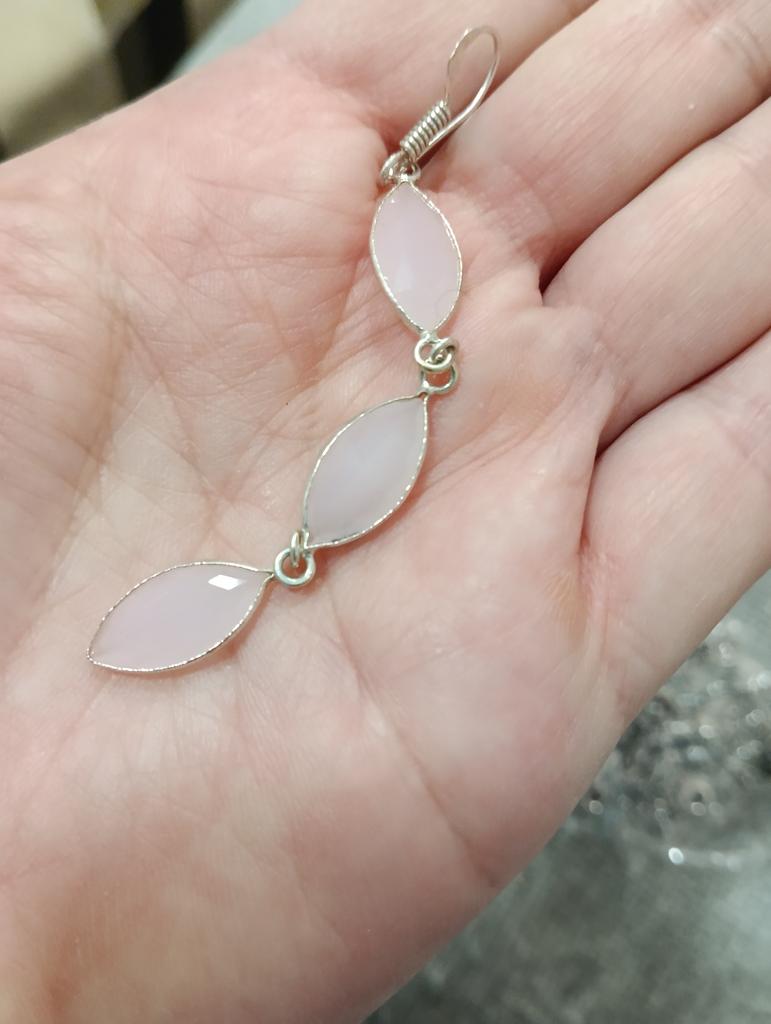 Calcedonia Rosa Hecho a Mano Joyería Plata de Ley 925 Pendiente 3.27" b1N32
