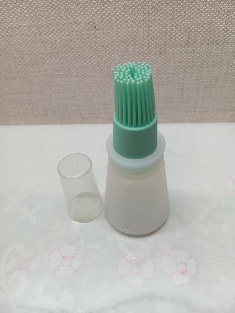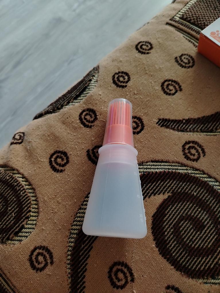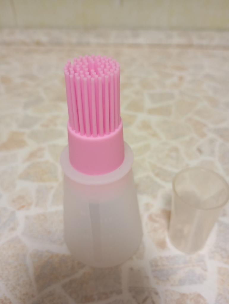 Bonito pincel con un recipiente para aplicar volumen en ml., el recipiente es blando, de silicona. El pincel sirve también como tapón-tapa, encaja bien. ¡Lo probé con agua, no se derrama! Espero que todo vaya genial al usarlo con aceite. ¡Contenta con la compra!