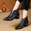 Botines cortos de mujer Moda Botas de cuero PU Mujer Invierno nueva Tendencia Estilo británico cremallera lateral más forro polar Botines al Tobillo