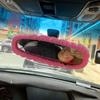 Cute Car Rearview Mirror Cover Cartoon Plush Rabbit Heart Auto Rear View Mirror Decoration Rear View Mirror Case Accessories