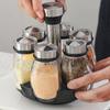 Juego de 7 tarros de especias, organizador de vidrio, soporte giratorio para condimentos, azúcar, pimienta, saleros, estante de almacenamiento de cocina
