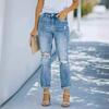 Vaqueros con borde sin rematar y cintura alta de color sólido de talla grande para mujer