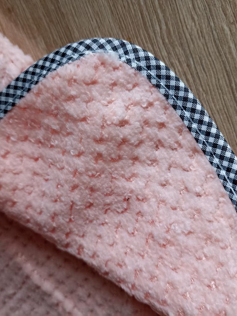 Paño suave, color agradable. Aún no he comprobado el grado de absorción. Espero que todo vaya bien.