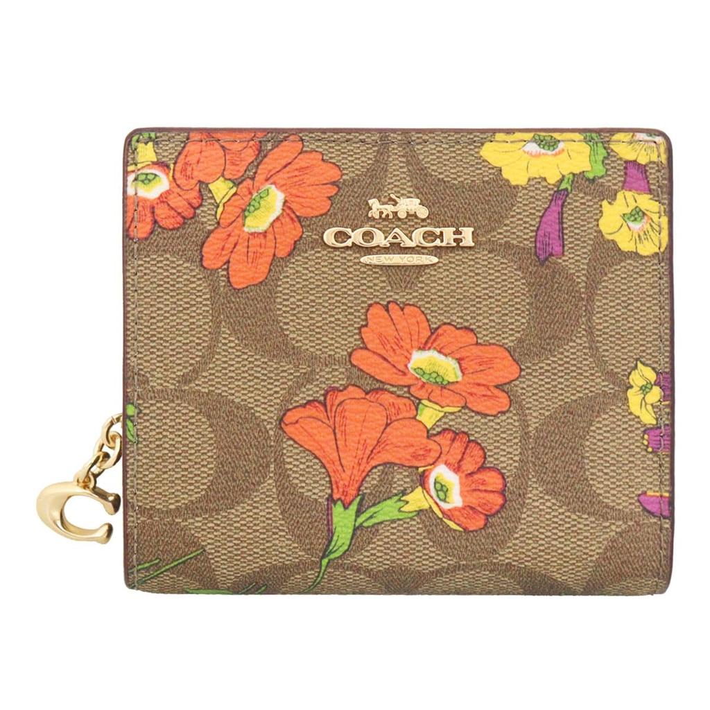 Cartera FCR939 CR939 Caqui Estampado Floral de Firmas Múltiples C Charm Broche Cremallera Redonda [Coach] (Monedero Bifold) Mujeres [Producto de outlet] [Marca] [Artículo]