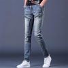 Pantalones vaqueros retro lavados de corte ajustado para hombre: pantalones de moto de moda de primavera y otoño