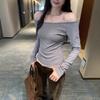 Designed fake two-piece color-blocked long-sleeved T-shirts for women in early spring 2024 new slim-fitting pure desire tops with bottoming shirts