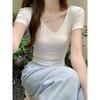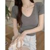 Solid color large neckline short-sleeved T-shirt for women summer new sweet hot girl slimming sexy versatile temperament short top