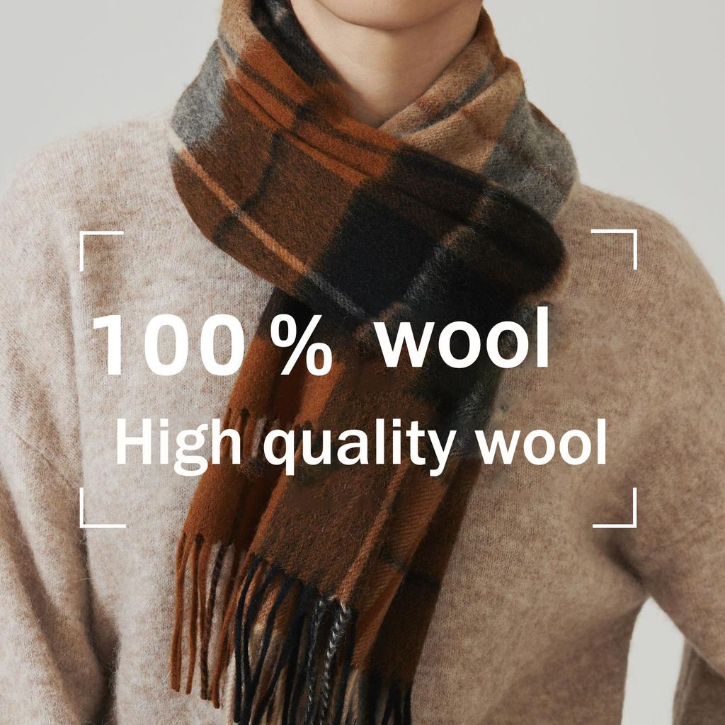 Bufanda de lana 100 % de estilo británico para mujer, otoño e invierno, con tacto de alta gama, versátil chal grueso con borlas a cuadros para hombre.