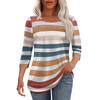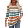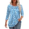 Top de Moda para Mujer Cuello Redondo Pliegues en el Delantero Tapeta Manga 3/4