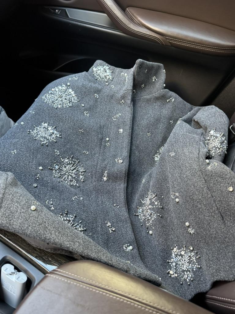 Lentejuelas Bordado Copo de Nieve Abrigo de Lana Mujer Cuello Alto Suelto Chaqueta Gruesa Vintage Manga Larga Abrigo Femenino Otoño Invierno Nueva Moda