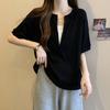New V-neck Right Shoulder Large Size Solid Color Short-sleeved T-shirt for Women Summer Sexy Hot Girl Top Fashionable To Wear Outside